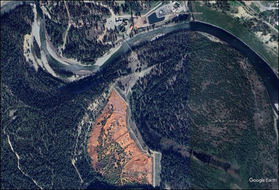 Drainage Water Treatment Plant sludge landfill on south side of St. Mary River (Google Earth image Sept 20, 2024).