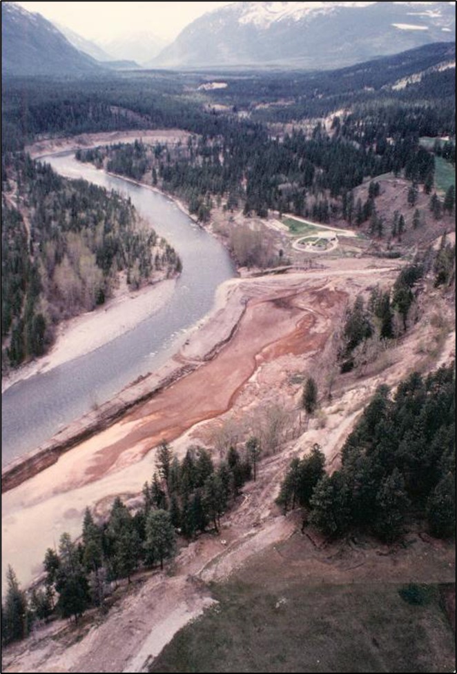 In the 1950s, the large quantities of gypsum waste from the fertilizer plant were stored in an impoundment on the north bank of the St. Mary River, just below the confluence with Mark Creek. With the agreement of the BC Department of Recreation and Conservation, the gypsum waste was stored in this pond for 10 months and discharged to the St. Mary River during the May and June freshet when river flows were at their annual highest. Increased fertilizer production resulted in increased gypsum waste, from 375 tons/day in 1960 to 1,800 tons/day in 1966, and discharge to the river became continuous. Ironically, before the construction of the Libby Dam on the Kootenay River in Montana in 1972, the vast quantities of phosphorus waste from this operation resulted in an increase in biological production in Kootenay Lake through the 50s, 60s and early 70s that culminated in trophy Girard rainbow trout that reached 30 pounds. However, life for fish in the St. Mary River was not as good.