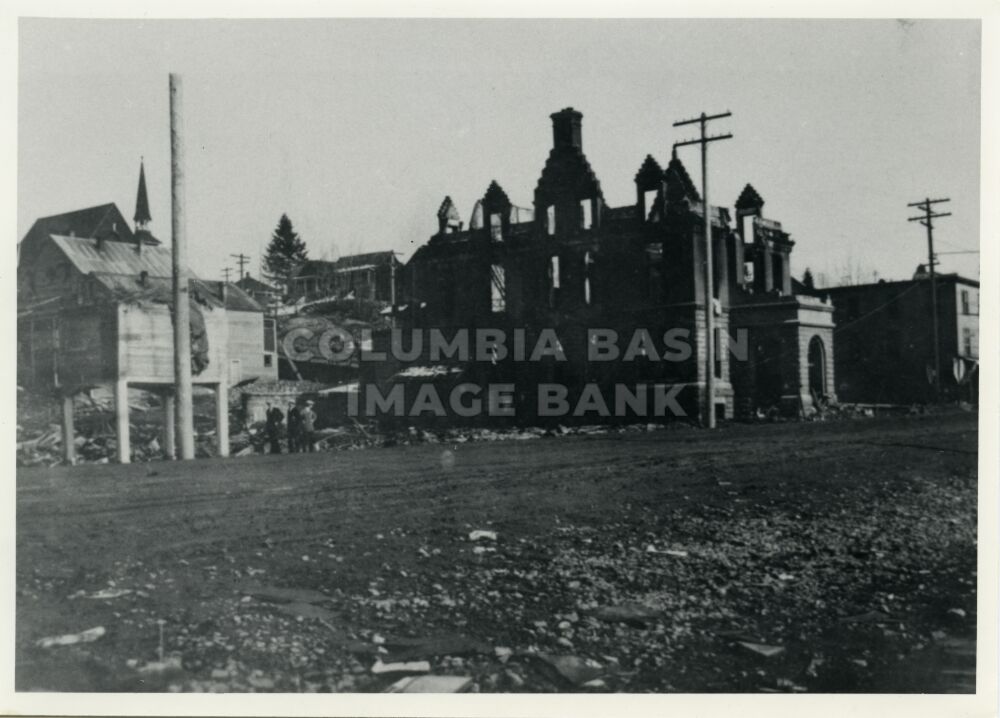 Rossland Post Office and Customs Building after the fire looking east on Columbia Ave. 1929