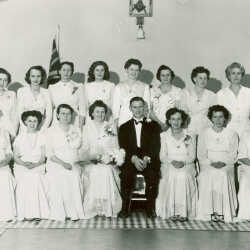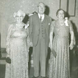 Harmony Chapter #45, Order of Eastern Star, Kimberley 1950. R-Patricia Dawson, Worthy Matron, 1943; Centre-Thomas Dawson, Worthy Patron, 1950-1952-1953-1954,1956-1957; L- Georgine Morrison, Worthy Patron, 1933.