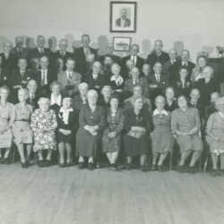 Kimberley Knights of Phythias, 1948: Top row: Unknown, Ernie Nesbitt, Mrs. Nesbitt, Mr. Clements, Mrs. Clements, unknown, Mr. Leith, Mrs. Leith, Bill Richardson, Mrs. Chesham, unknown, unknown, Mr. Davies, Mr. Sims. 2nd row: John Black, unknown, unknown, Mrs. Crossley, Mrs. Beduz, Mrs. Wilson, unknown, Mrs. Bidder, Mrs. Wormington, unknown, Mrs. Ingebritson, unknown, Mrs. Morrison, unknown, Percy Lye. 3rd row: Mr. Hargreaves, Charles Morrison, unknown, unknown, unknown, unknown, unknown, Mr. Bidder, Mrs. Whitford, Mr. Roskelly, Mrs. Roskelly, Mrs. Watkins, Mr. Watkins. 4th row: Mr. Adlard, unknown, unknown, unknown, Mrs. Inger, unknown, unknown, Mrs. Blackwell, Mrs. Vickers, Mrs. Stirton, unknown, unknown, Mrs. Horman, Mr. McClure.