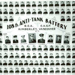 108th Anti-Tank Battery, April 1940. Names of individuals in the image are legible when viewing full sized resource.