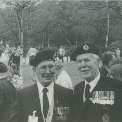 Jack Reynolds, Lt. Col. ( right ) and SS Tilly Sergeant, on May 5,1985 at the celebration of the 40th Anniversary of the Liberation of Holland. This was at the Canadian Cemetery at Holtenberg in Raalte, Province of Overysel, Holland.