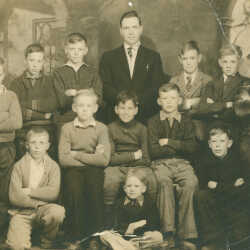 Pals Club in Kimberley, B.C., 1938. People in the photo are: Poole, Herchemer, McGowan, Willis, Thompson, Banks, Gallpen, O'Connor, Irwin, Hargreaves, McKenzie, Irvine, Kinrade, Hopkins, Leaman, Angove and Barrett. Back row L to R: Bill Poole, Bill Herchemer, Harold McGowan, Rev. Willis, Lee Thompson, John Banks, Doug Gallpen Front Row L to R: Mel Thompson, Bob Hopkins, Nick Banks, Bill Leaman Jr., Bill Angove Front: Bob Barrett Missing members - Jim O'Conner, Bill Irwin, Jack Hargreaves, Bob McKenzie, Bill Irvine, Chuck Kinrade