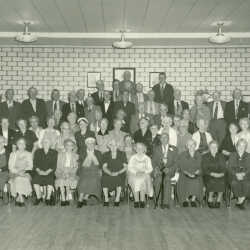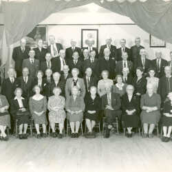 Kimberley Knights of Phythias, 1953 - Oldtimers Party - Included in photo are: Mrs. Blackwell, Percy Lye, Mr. and Mrs. Stirton, Mr. Richardson, Mrs. Chisholm, Mr. Bidder, Mrs. Morrison, Mrs. Crossley, Charlie Morrison, Mr. and Mrs. Roskilly.