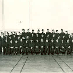 Kimberley Air Cadet Squadron at Summer Camp - 1954: Top Row - Mr. Cassidy, Bernard Hagen, Bob Nesbitt, Dave Backstrom, Barrie Foster, Malcolm Watson, James Oscarson, Warren Corrie, Dino Bozzer, Brock Berkhoven, Mr. Bently. Bottom row - Bernie Beninger, Doug Whitford, David Oscarson, Bill Almack, Jack Dean, Lloyd Dean, Norman Foster, Barry McWhirter, Raymond Ohnstad