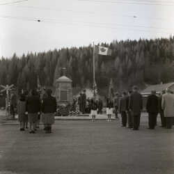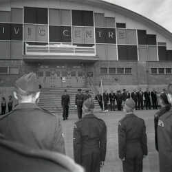 People at the Remembrance Day Services in Kimberley, November 1967 (note railway tracks in background).