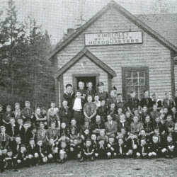 The Pals Club in Kimberley, B.C., 1936 by old Presbyterian Church - B.R. Willis in photo.