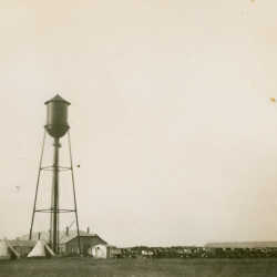 108th Anti-Tank Battery tent camp at Shilo, Manitoba. Salvation Army building in background.