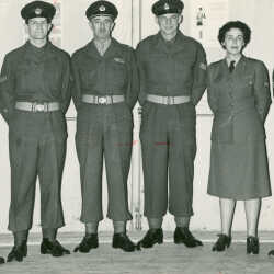 Identified as members of the Kiomberley Militia c. 1960. Left to right: Ray Bozzer, Eric Bisgrove, Roger Lye, Barney Ralph, Nan McRae, Bill Archibald.