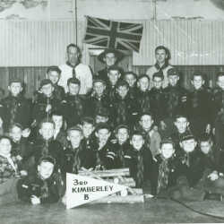 3rd Kimberley Cub Scouts, "B" Group, inside the Scout Hall. Robert McLean added: The boy above the one stretched out on the floor at the front, with his right hand up is, I think Lyle Berg. He was a friend of my brother's, Allan McLean. The boy in the back row with glasses could be me, Robert McLean.