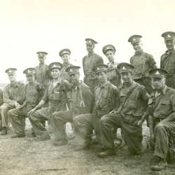 Men of the 108th Anti-Tank Battery training at Camp Shilo, Manitoba. Roger Lye kneeling 2nd from right.