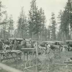 Kimberley, B.C. Masonic Lodge Stag Picnic at Premier Lake. A good turn-out of autos.
