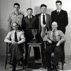 1946 - Coderre Cup (for First Aid) winners - Back Left: Barney Ralph, Tom Hotchkiss, Baynard Iverson, Alf Ingelbrighten. Front Left: Joe McLay and Joe Shaw.
