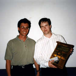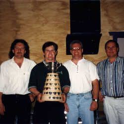 Vic Mann, Rick Peacosh, Clark Millner and Ed Bannatyne holding award, 1997.