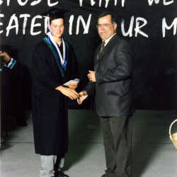 Mark Carey receiving the Cominco Industrial academic award from Operations Manager Bob Jacko.