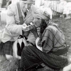 Dougie Smith at the Athalmer Fall Fair, lighting a cigarette, c. 1952.