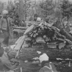 Building the pyre for a Sikh funeral at Bull River, B.C. c. 1920