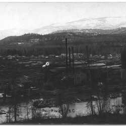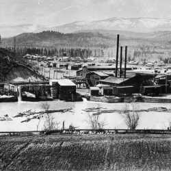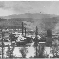 The C.P.R. sawmill at Bull River (later moved to Canal Flats) and the townsite behind the mill.