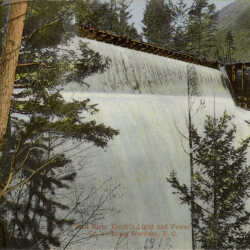 Unused colour printed postcard of Bull River Electric Light and Power Company's flume and spillway at Aberfelde Dam near Bull River, BC.