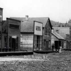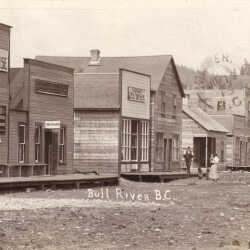 This is the commercial area of the Bull River townsite c. 1913 showing the C.E. Benedict store, restaurant and J.H. Chassay tailor shop.