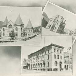 ALBUM Rossland, B.C. buildings: L-R: Court House, Bank of Montreal & New Post Office.REFERENCED WITH #0433.0001.
