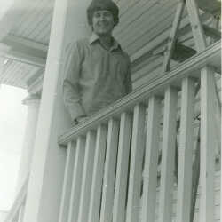 Gary Anderson working on the old Masonic Hall, Cranbrook, B.C. 1976 (which later became The Studio)