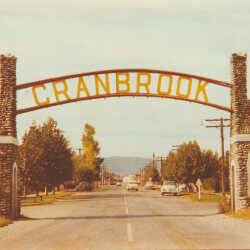 Old east (or north) archway at entrance to Cranbrook, BC, located Cranbrook Street and 4th Street North (aka Harold Street). The arches were built during the 1930s and came down in the late 1950s to accommodate road-widening.