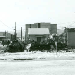 The once stately Cranbrook court house was reduced to this pile of rubble in 1955. For nearly 60 years it was a major landmark in Cranbrook. Location was the middle of Baker Street, at the east end of downtown.