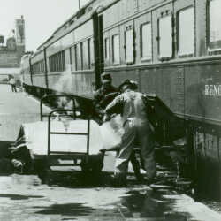CPR R-Class sleeper car "Expo Limited":Photo of the "Expo Limited" taken at Moose Jaw by R. Whetham in 1967. Ice was taken on at several points along the route to provide air conditioning.