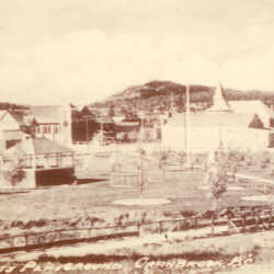 Known as the 'Community Playground' when first started, this area is now known as Rotary Park. In the back can be seen the Knights of Pythias Hall on Norbury Avenue, and the spire of City Hall.