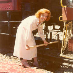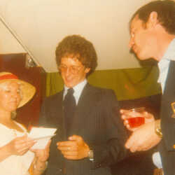 The 1976 official opening of the Cranbrook Railway Museum. An unidentified woman, Garry Anderson & Charles Maier in photo.