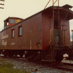 The rail coach 'Argyle' and a CPR caboose at Canadian Museum of Rail Travel in Cranbrook ,1978.