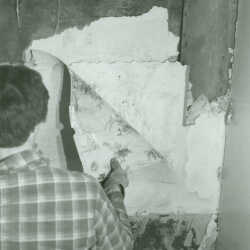 Cranbrook, B.C - Col. Baker Home restoration project, interior; Nov. 1982-March 1983-carefully removing layers of old wallpaper for records.