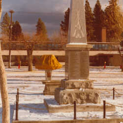 Cranbrook Cenotaph in Rotary Park in winter.
