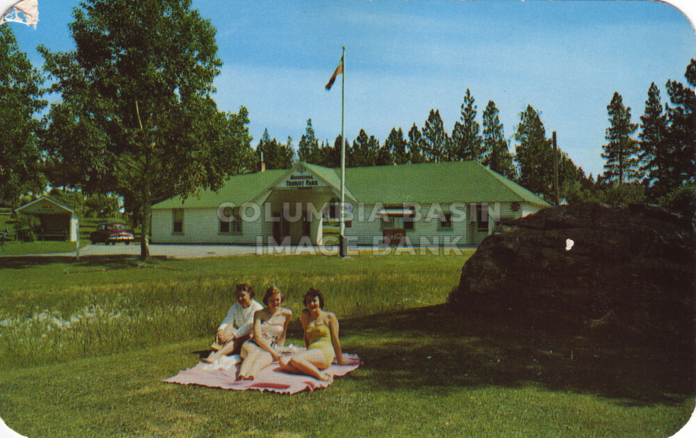 Cranbrook remained without an official tourist park through 1924, but the pressures of the growing tourist trade forced some compromise. An unofficial tourist park developed along Joseph’s Creek, above the trout hatchery and outside the city limits. Meanwhile The Fernie Board of Trade in 1921 negotiated the use of a piece of land near the railroad tracks for the exclusive use of auto tourists to Fernie. They constructed a building containing a cooking range and laundry tubs, as well as another containing flush toilets. Associated with this three separate sites, each with its own fireplace, were prepared.